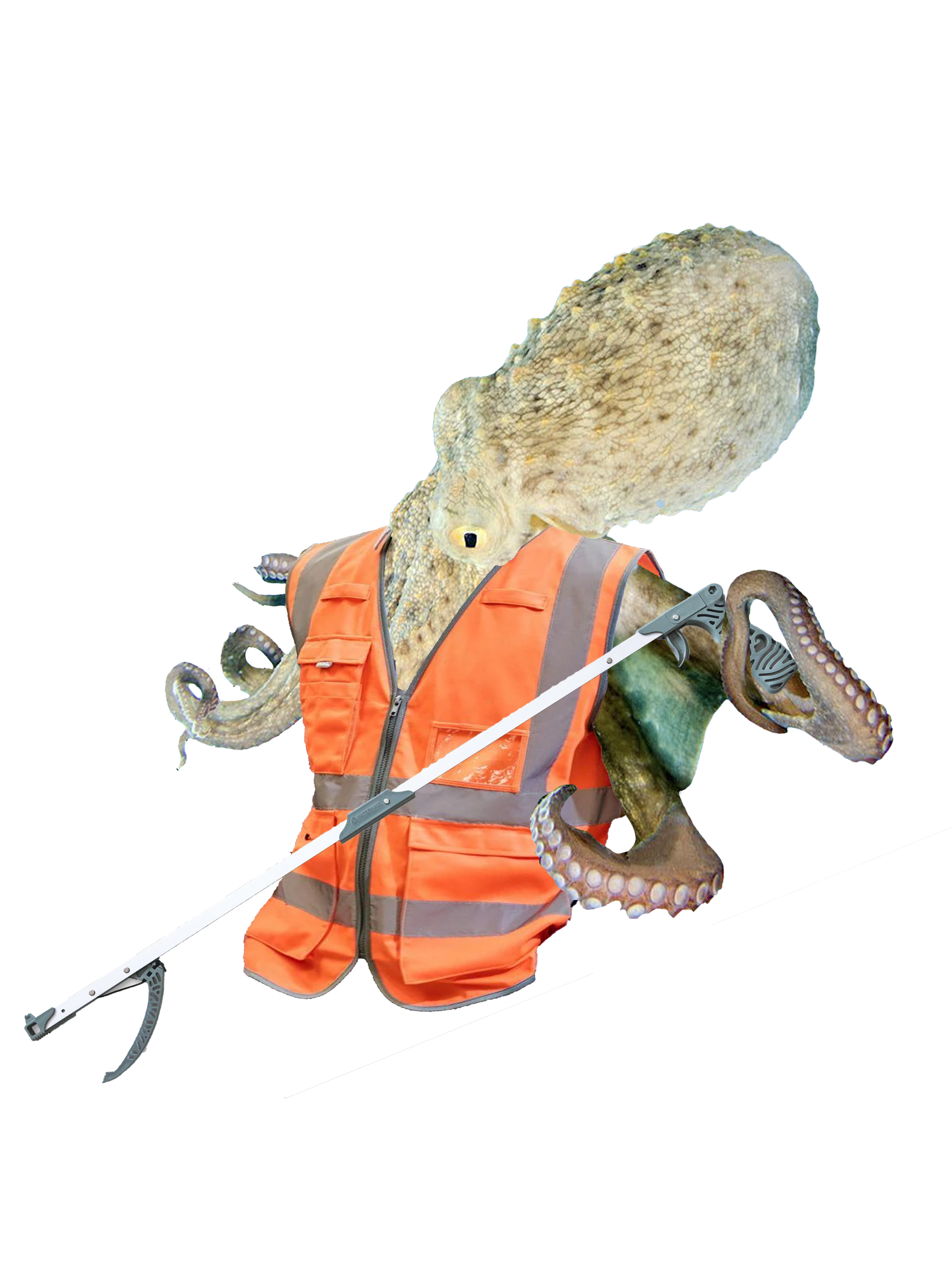My litter picking mascot, the octopus, was created to emphasise this joke by using visuals that we can associate with human litter pickers.
